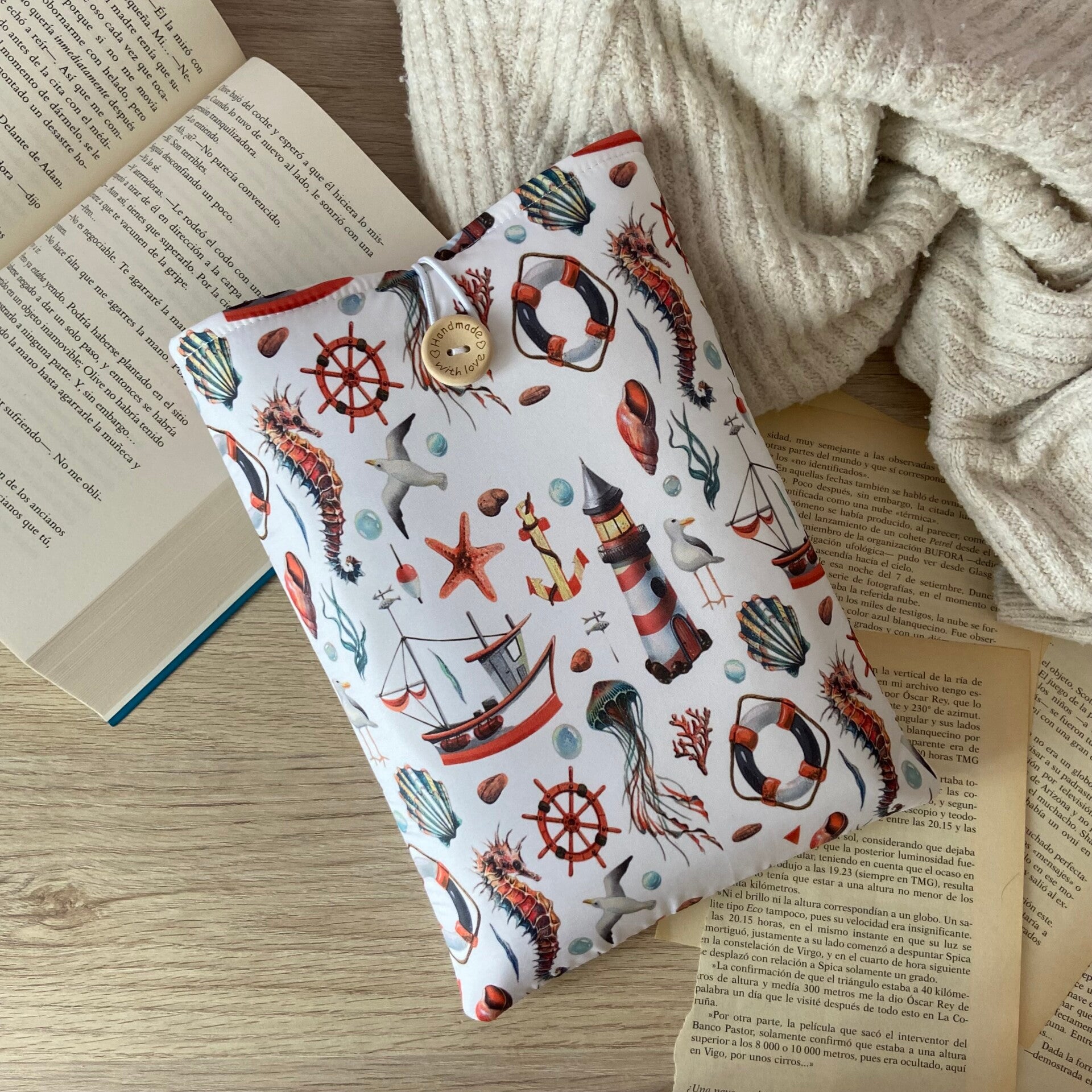 Funda literaria llevando anclas