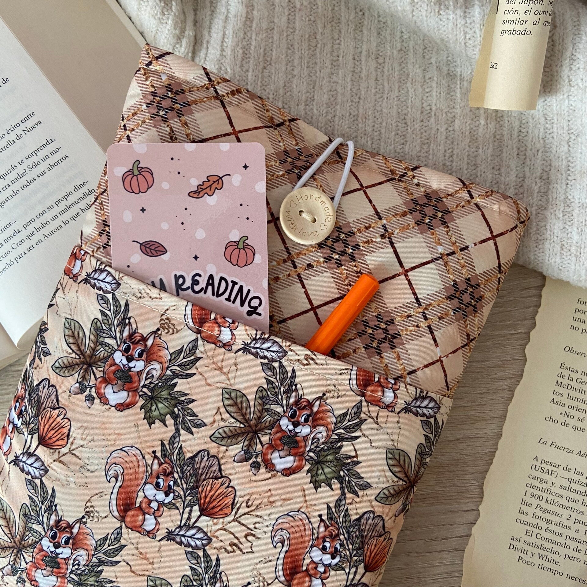 Funda literaria ardillitas con bolsillo