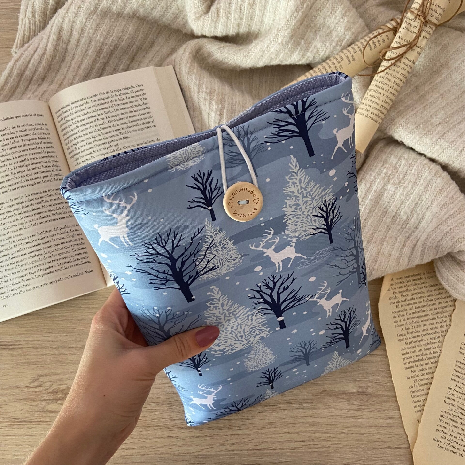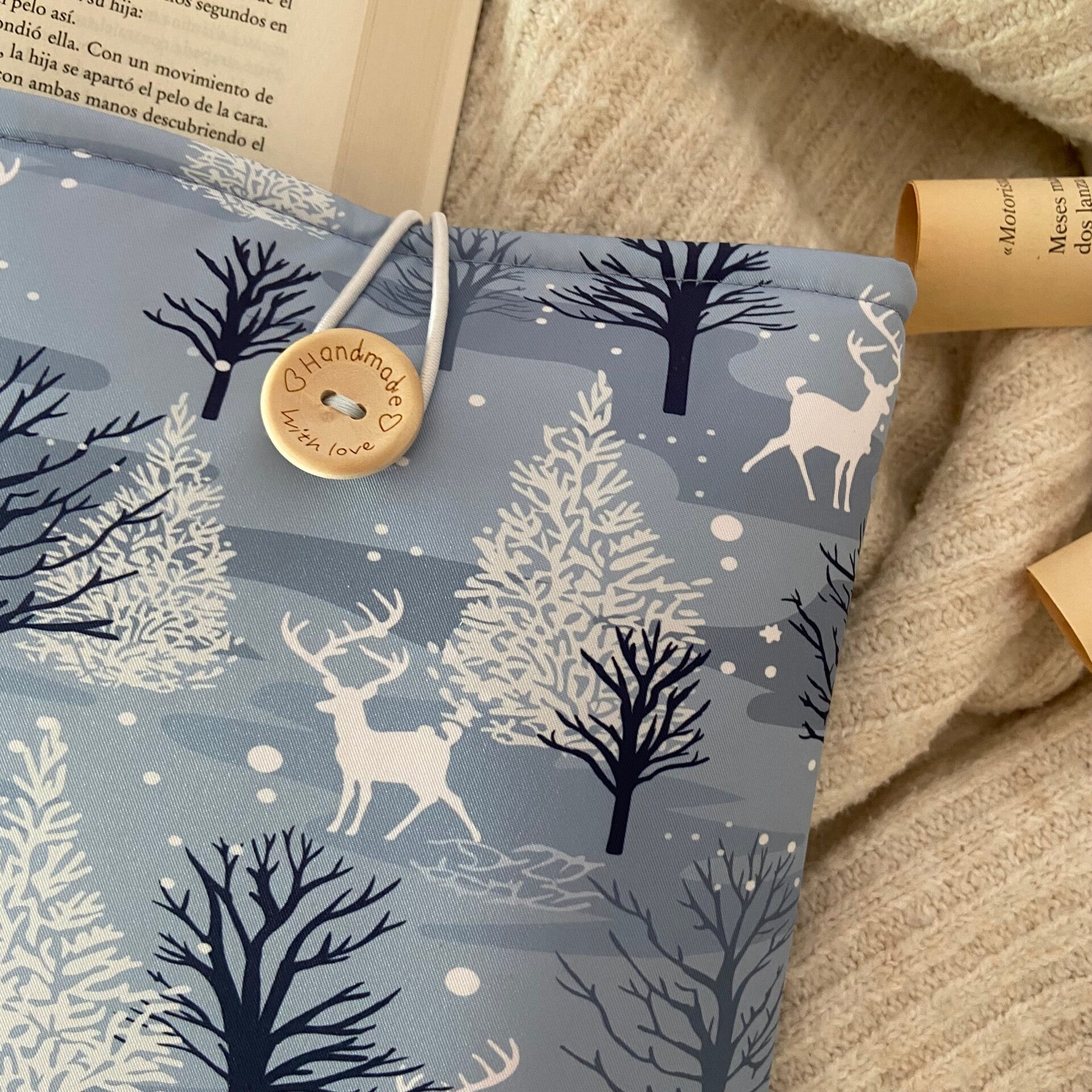 Funda literaria renos en el bosque
